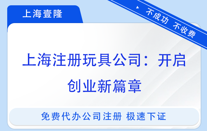 在上海注冊玩具公司是一個復(fù)雜但充滿機遇的過程。通過精心準備和合規(guī)操作,您將能夠成功開啟創(chuàng)業(yè)新篇章,為兒童帶來快樂和成長。若您近期在為注冊玩具公司而發(fā)愁,可以找上海壹隆,專業(yè)代辦15年,深受客戶的一致好評,無需本人到場,快速辦理,歡迎咨詢!