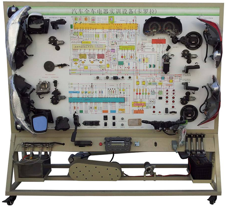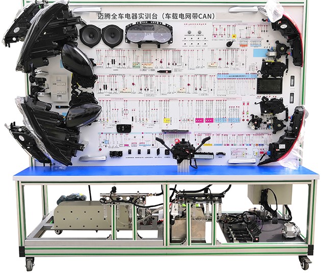 汽車電氣設(shè)備實訓(xùn)室。汽車電器設(shè)備實訓(xùn)室包含有汽車燈光系統(tǒng)、車載網(wǎng)絡(luò)系統(tǒng)、全車電器系統(tǒng)、汽車啟動系統(tǒng)、汽車空調(diào)系統(tǒng)、全車線路試驗臺、等實訓(xùn)教學(xué)設(shè)備。該實訓(xùn)室可以承擔(dān)《汽車構(gòu)造》、《汽車電器設(shè)備》、《汽車電控系統(tǒng)》、《汽車檢測與診斷》等課程的實踐教學(xué)任務(wù)?梢杂糜谘芯、分析全車電器系統(tǒng)、燈光系統(tǒng)、儀表系統(tǒng)等電器設(shè)備的電路及功能。利用這些系統(tǒng)進行實踐教學(xué),使學(xué)生熟悉汽車電器的結(jié)構(gòu)和工作原理,掌握各個系統(tǒng)的基本組成電路,掌握主要電路的檢測方法和系統(tǒng)的故障特征,從而具有一定的檢測和調(diào)校能力。