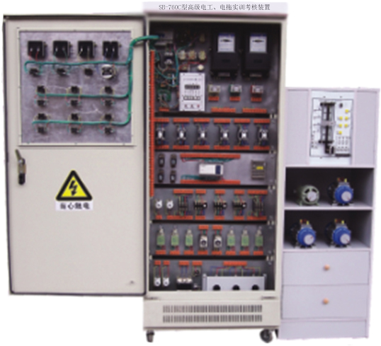 高級電工、電拖實訓考核裝置是按照勞動社會保障部頒發(fā)的“工人技術等級標準”和“職業(yè)技能鑒定規(guī)范”的內(nèi)容要求,根據(jù)初級電工培訓考核的實際情況而設計的新一代集培訓學習、理論驗證、實際操作能力、考核鑒定于一體的多功能柜式設備。整臺設備以標準的電氣控制柜為主柜,利用柜體的雙面空間,布置電器 及配套實驗器材,能完成初級電工考核鑒定中的電力拖動控制與照明電路的實操項目,該電工、電拖實訓考核裝置堅持理論聯(lián)系實際的原則,突出技能訓練,注重針對性、實用性、科學性,經(jīng)全國多家職業(yè)技能訓練中心、職校、技校使用證明,該柜體設計合理、實操方便,占地面積少。為延長電器的使用壽命,各電器的接點都與接線端子相連,再讓學生在接線端子上接線,連接電機、電器來完成各項控制實驗,有效降低材料消耗,延長使用壽命。該套設備適用于各勞動職業(yè)技能鑒定部門,同時適應各大、中專、技校、職校初級電工、電拖專業(yè)教學與實訓考核。