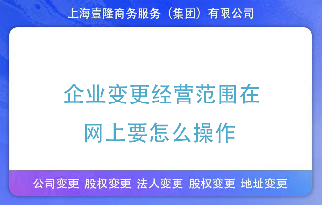 整個過程中,企業(yè)應嚴格按照平臺的提示操作,并確保所提交的信息和材料都是真實、準確和完整的。上海壹隆專業(yè)代辦16年,可以變更經(jīng)營范圍,法人,注冊地址、股權等等,不成功不收費,歡迎咨詢!