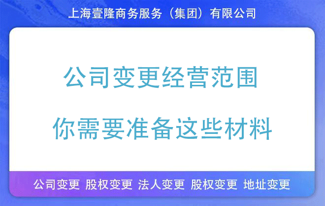 綜上所述,公司變更經(jīng)營范圍需要準(zhǔn)備的材料包括基本申請材料、特定情況下的附加材料以及遵循相應(yīng)的辦理流程。在準(zhǔn)備材料時,務(wù)必確保材料的真實(shí)性和完整性,以便順利完成變更登記手續(xù)。若您對以上材料還存在疑惑,可以找上海壹隆為您解答各種疑惑,還可以交給上海壹隆代辦,無需本人到場,輕松拿證,歡迎咨詢!