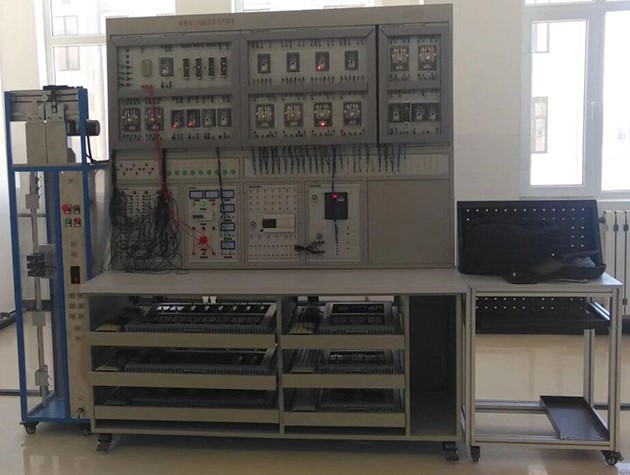 1、模型電梯設(shè)4層4站,由模擬井道架、轎廂、對重、曳引機、電梯門、門電機、各層站外呼盒及主要安全裝置組成,固定設(shè)置在實驗臺側(cè)面。模擬井道架內(nèi)需配置用于檢測轎廂位置的樓層感應(yīng)器、平層感應(yīng)器(與實際電梯相似)等,其接線端子引至模擬井道架的插接孔上。井道架采用金屬材料為主體支架,有機玻璃封閉。★設(shè)備必須采用臺式結(jié)構(gòu),設(shè)置活動式抽屜電氣板,每層抽屜板均設(shè)置有公共接線板(總線型接線方式,總線連接點數(shù)必須達到120點以上),抽屜電氣板之間采用工業(yè)坦克鏈連接,公共抽屜板連線采用真實電梯多芯隨行電纜。