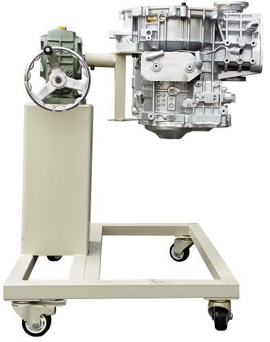 采用減速翻轉(zhuǎn)機構(gòu),可使變速器旋轉(zhuǎn)任意角度,并能任意位置鎖止,便于學生從不同的角度進行拆卸和裝配。
