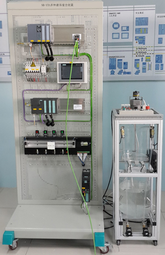 在具備PLC編程、線纜接線、PLC硬件組態(tài)、電氣調(diào)試、管路搭建、變頻調(diào)速控制的同時(shí),重點(diǎn)突出攪拌工藝過(guò)程控制中常用傳感器的配線、采集、變送、信號(hào)轉(zhuǎn)換、以及PID控制策略的控制的主要實(shí)訓(xùn)功能。