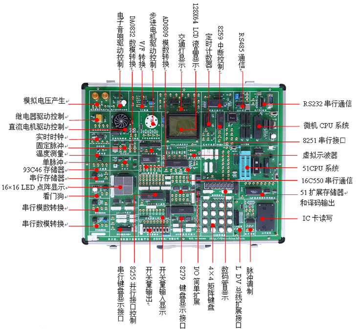 含箱體、電源、51系統(tǒng)和88系統(tǒng)以及標配實驗電路 |