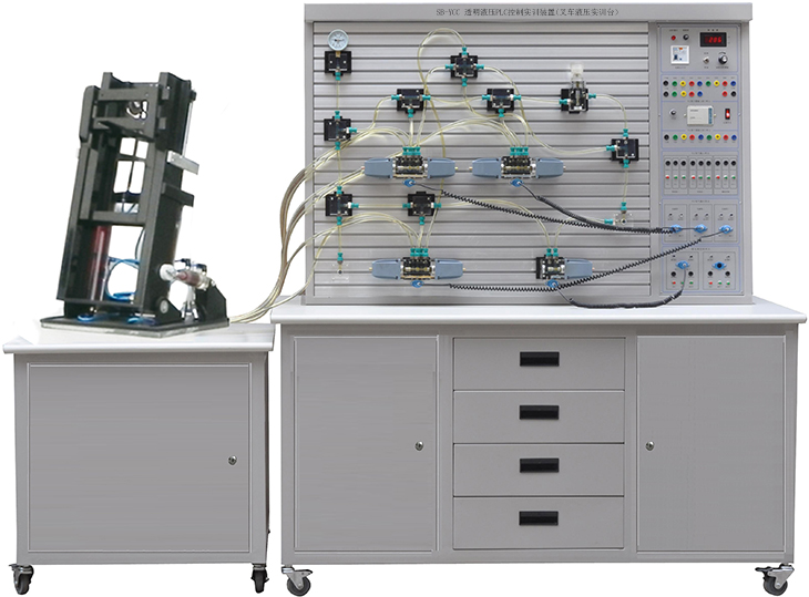 液壓與氣動(dòng)技術(shù)實(shí)驗(yàn)室設(shè)備、透明液壓實(shí)驗(yàn)臺(tái)、氣動(dòng)實(shí)驗(yàn)臺(tái)、液壓元件拆裝實(shí)訓(xùn)臺(tái)、透明液壓傳動(dòng)演示實(shí)驗(yàn)臺(tái)、液壓綜合測試實(shí)驗(yàn)臺(tái)、智能液壓綜合實(shí)驗(yàn)臺(tái)、機(jī)電液綜合實(shí)驗(yàn)臺(tái)、雙面氣動(dòng)傳動(dòng)實(shí)驗(yàn)臺(tái)、液壓氣動(dòng)元件陳列柜、液壓挖掘機(jī)實(shí)驗(yàn)臺(tái)、液壓起重機(jī)實(shí)驗(yàn)臺(tái)、液壓裝載機(jī)實(shí)驗(yàn)臺(tái)、透明液壓推土機(jī)實(shí)訓(xùn)臺(tái)、液壓叉車控制教學(xué)實(shí)驗(yàn)臺(tái)主要承擔(dān)機(jī)電類相關(guān)專業(yè)《液壓與氣動(dòng)技術(shù)》課程的專業(yè)實(shí)驗(yàn)任務(wù)。能提供包括液壓泵和控制元件結(jié)構(gòu)拆裝與分析實(shí)驗(yàn)、系統(tǒng)回路控制實(shí)驗(yàn)、系統(tǒng)性能實(shí)驗(yàn)和氣動(dòng)技術(shù)實(shí)驗(yàn)在內(nèi)的不同類型的實(shí)驗(yàn)。液壓與氣動(dòng)實(shí)驗(yàn)室所開設(shè)的實(shí)驗(yàn)和液壓(或氣動(dòng))行業(yè)中的液壓系統(tǒng)(或氣動(dòng)系統(tǒng))的設(shè)計(jì)、連接調(diào)試、維護(hù)等緊密相關(guān),通過機(jī)-電-液一體化綜合控制實(shí)驗(yàn),學(xué)生可系統(tǒng)地學(xué)習(xí)PLC程序設(shè)計(jì)與調(diào)試、液壓回路的設(shè)計(jì)與調(diào)試,并且通過碩博軟件使相關(guān)知識(shí)有機(jī)地結(jié)合在一起,實(shí)現(xiàn)對(duì)硬件的動(dòng)作,從而提高各門課程的綜合應(yīng)用能力。