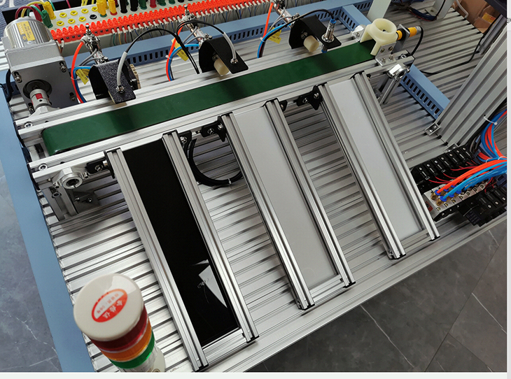 模塊、變頻器模塊、按鈕模塊、電源模塊、模擬生產(chǎn)設(shè)備實訓(xùn)模塊(包含上料單元、皮帶輸送檢測單元、氣動機械手搬運單元、物料傳送倉儲單元)、觸摸屏、接線端子排和各種傳感器等組成。采用開放式和拆裝式結(jié)構(gòu),可根據(jù)現(xiàn)有的機械部件組裝生產(chǎn)設(shè)備,使整個裝置能夠靈活的按實訓(xùn)教學(xué)或競賽要求組裝具有生產(chǎn)功能的光機電一體化設(shè)備。模塊采用工業(yè)標準結(jié)構(gòu)及抽屜式模塊放置架,互換性強。