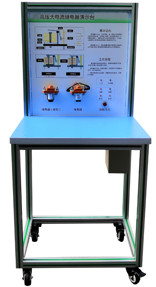 五、基本配置:高壓大電流繼電器EV200AAANA(兩件,其中一件解剖),高壓大電流繼電器EVR200CE(兩件,其中一件解剖),數(shù)字式萬用表,開關(guān)電源,手動(dòng)開關(guān),可移動(dòng)實(shí)訓(xùn)臺(tái)(帶原理面板)。
