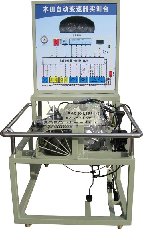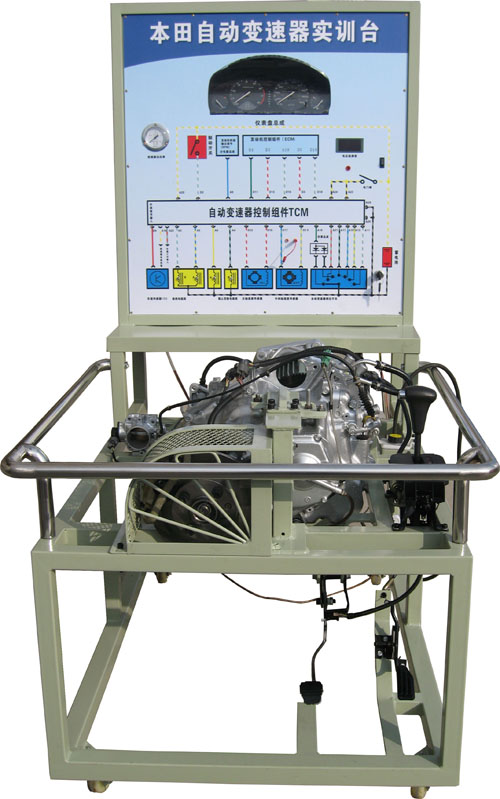 本自動(dòng)變速器實(shí)訓(xùn)臺(tái)是本公司采用日本本田公司自動(dòng)變速器為適應(yīng)汽車教學(xué)需求而研制的,該實(shí)訓(xùn)臺(tái)由電控變速器(八成新)、操作顯示面板及發(fā)動(dòng)機(jī)彩色電氣原理圖電腦控制柜、可移動(dòng)式臺(tái)架(萬(wàn)向腳輪)、驅(qū)動(dòng)系統(tǒng)(腳踏式油門踏板)變頻電機(jī)驅(qū)動(dòng)、剎車系統(tǒng)(腳踏液壓盤試剎車)、啟動(dòng)系統(tǒng)(電門鎖方式啟動(dòng))、車速傳感器、電磁閥執(zhí)行器、原車電腦、具有發(fā)動(dòng)機(jī)運(yùn)轉(zhuǎn)及顯示(轉(zhuǎn)速.車速.檔位)、液壓油壓力顯示表(顯示換檔過(guò)程油壓)、自動(dòng)變速器電磁閥工作指示LED燈、原車診斷座、進(jìn)行失速實(shí)驗(yàn)等、故障設(shè)置區(qū)可設(shè)置8路故障(老師設(shè)置任一路線路故障)、故障排除區(qū)(學(xué)生通過(guò)各種儀器、儀表、)在面板上用專用排故線連接排除故障、傳感器信號(hào)模擬等多項(xiàng)功能、具結(jié)構(gòu)緊湊、操作方便、安全可靠、教學(xué)直觀、是汽車自動(dòng)變速器實(shí)物教學(xué)不可缺少的實(shí)驗(yàn)室設(shè)備之一。