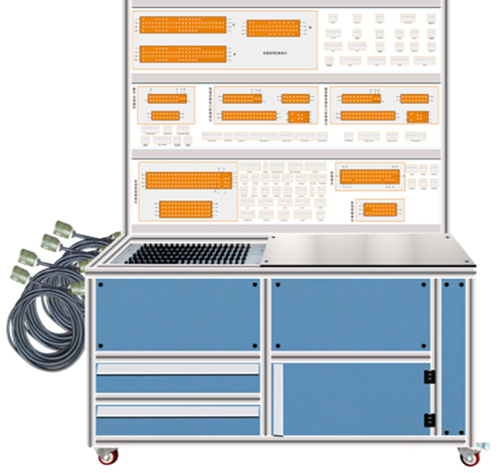 2、通過(guò)裝有與原車插頭配套插接器的線束,連接故障設(shè)置終端,故障設(shè)置終端通過(guò)專用線束連接檢測(cè)臺(tái),實(shí)現(xiàn)整車各系統(tǒng)電路教學(xué)、實(shí)訓(xùn)考核的多功能教學(xué)設(shè)備;