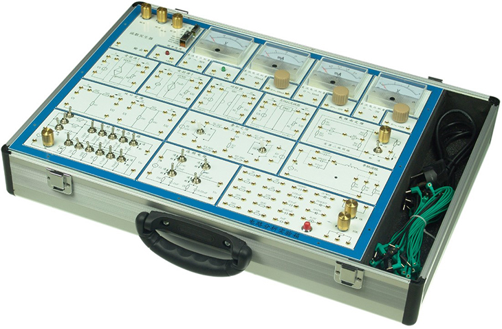 電路分析實(shí)驗(yàn)箱主要是進(jìn)行電工學(xué)中的有關(guān)電路分析理論的實(shí)驗(yàn)論證,屬弱電類實(shí)驗(yàn)。它采用模塊式結(jié)構(gòu),各模塊間相互獨(dú)立,通過元件區(qū)不同元件組合,可組成多種測(cè)試電路,實(shí)驗(yàn)板正面印有電路圖,反面裝有器件,各實(shí)驗(yàn)電路中需測(cè)試的點(diǎn)均裝有測(cè)試孔,使用方便,接觸可靠,而且壽命長(zhǎng)、效率高,適用于進(jìn)行各種電路的實(shí)驗(yàn)研究,可滿足各類高、中等院校及職業(yè)技術(shù)類院校的電工原理、電路分析等課程實(shí)驗(yàn)教學(xué)的需要。