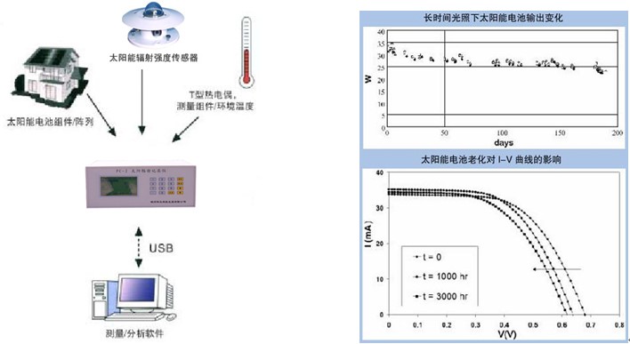 準(zhǔn)確測試光伏方陣和組件在野外條件下的太陽輻射強(qiáng)度,環(huán)境溫度,風(fēng)速,電池組件的溫度,開路電壓、短路電流、最大功率、最大功率點(diǎn)電壓、最大功率點(diǎn)電流和填充因子測算光伏方陣和組件在標(biāo)準(zhǔn)測試條件下(STC)下的開路電壓、短路電流、最大功率、最大功率點(diǎn)電壓、最大功率點(diǎn)電流、填充因子和轉(zhuǎn)換效率