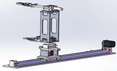 本站的功能是完成向各個(gè)工作單元輸送工件,系統(tǒng)分為雙機(jī)械手單元和直線位移位置精確控制單元兩部分,系統(tǒng)上電后,先執(zhí)行回原點(diǎn)操作,當(dāng)?shù)竭_(dá)原點(diǎn)位置后,若系統(tǒng)啟動(dòng),供料站物料臺(tái)檢測(cè)傳感器檢測(cè)到有工件時(shí),機(jī)械手整體先提升到位后手爪伸出到位后手爪夾緊,手爪夾緊到位手爪開始縮會(huì)機(jī)械手整體下將到位后,伺服電機(jī)開始工作按設(shè)定好的脈沖量到加工站。加工站到位后機(jī)械手整體提升,提升到位后手爪伸出伸出到位后機(jī)械手整體下降,下降到位后工件已放入加工站物料臺(tái)上,然后手爪松開,松開到位后機(jī)械手回縮,等加工站加工完成后再將工件送到裝配站進(jìn)行大小料裝配,裝配完成后機(jī)械手抓取物料送到分揀站進(jìn)行分揀,這樣雙機(jī)械手的一個(gè)加工運(yùn)動(dòng)過程就完成了。只要料筒不缺料會(huì)持續(xù)以上過程。當(dāng)料筒出現(xiàn)缺料后,機(jī)器人會(huì)搬運(yùn)過來物料,機(jī)械手會(huì)運(yùn)行到取料位置抓取機(jī)器人上的小料,然后放入小料筒中,然后返回原點(diǎn),當(dāng)機(jī)器人再次搬運(yùn)過來物料,機(jī)械手會(huì)運(yùn)行到取料位置抓取機(jī)器人上的大料,然后放入大料筒中,這樣一個(gè)物料的拆分過程就完成了,直到把碼垛料臺(tái)上的物料全部拆分完成后為止。