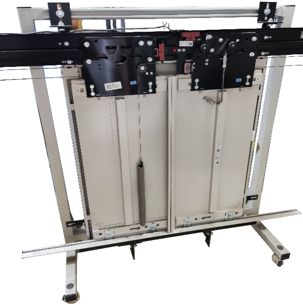要求該裝置至少由鋼結(jié)構(gòu)框架、層門等部件組成。按電梯開門方式的不同,設(shè)備至少分為中分門跟旁開門兩種類型。整體外觀要求簡潔、實(shí)用,能夠直觀地看到層門機(jī)構(gòu)的全部器件及整個機(jī)械動作過程。