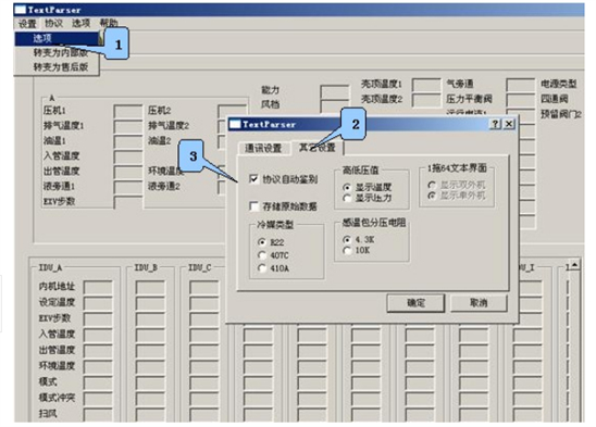 文本顯示界面:可測(cè)試壓縮機(jī)的運(yùn)轉(zhuǎn)頻率,傳感器的各種數(shù)據(jù),電子膨脹閥的工作步數(shù)等幾十種中央空調(diào)的工作數(shù)據(jù)和狀態(tài),