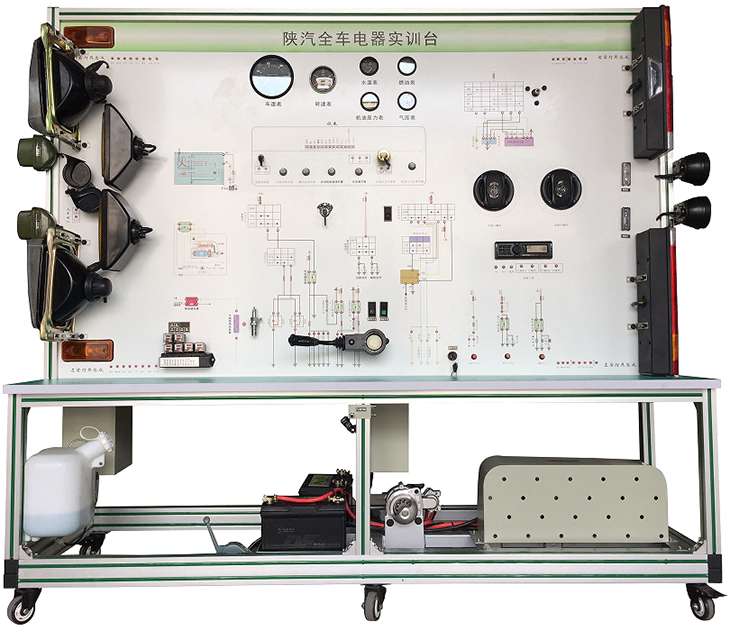 全車電路實訓臺、該設備采用陜汽SX2190柴油機整車電器實物為基礎,充分展示汽車儀表系統、燈光系統、雨刮系統、喇叭系統、發(fā)動機電器系統、起動系統和充電系統等汽車電器各系統的組成結構和工作過程。