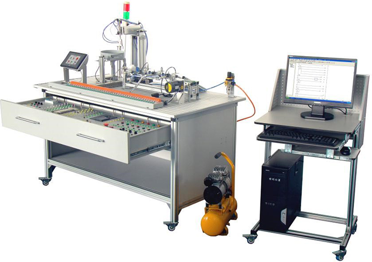 光機電氣一體化控制實訓(xùn)系統(tǒng)"是依據(jù)機電一體化教學(xué)的要求而精心研制的。它在接近工業(yè)生產(chǎn)制造現(xiàn)場基礎(chǔ)上又針對教學(xué)及實訓(xùn)目的進行了專門設(shè)計,強化了機電一體化的安裝與調(diào)試能力。實訓(xùn)裝置由型材導(dǎo)軌式實訓(xùn)臺、典型機電一體化設(shè)備機械部件、PLC
