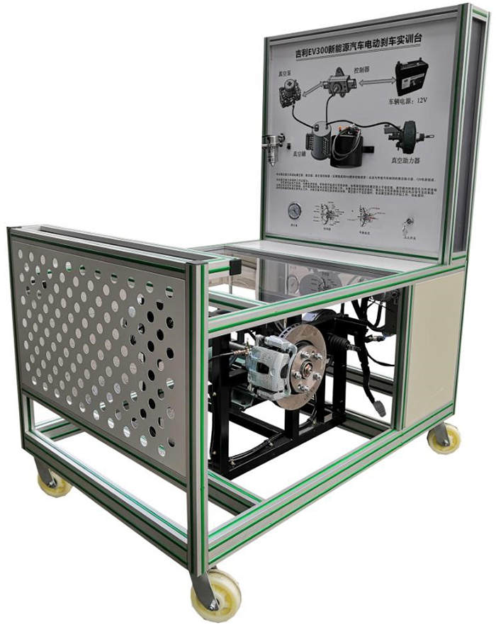 新能源汽車電動真空助力制動系統(tǒng)實訓臺選用吉利EV450 純電動汽車電動真空助力液壓制動系統(tǒng);真實地展示純電動汽車電動真空助力液壓制動系統(tǒng)核心零部件的結構與控制原理、安裝位置和運行工況,培養(yǎng)學員對純電動汽車電動真空助力液壓制動系統(tǒng)故障分析和處理能力。適合于各類院校對純電動汽車電動真空助力液壓制動系統(tǒng)理論和維修實訓的拆裝與維護、結構與原理認知、系統(tǒng)操作、功能動態(tài)演示、故障檢測與診斷教學需要。