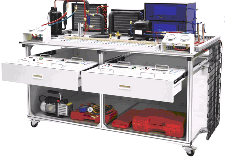 制冷制熱實訓設備,雙門冰箱實訓考核裝置、家用電器實訓裝置、空調實訓考核裝置